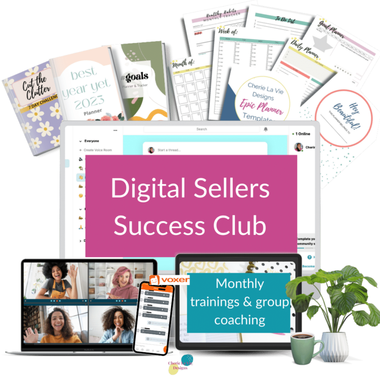 Get immediate access to the ADHD bundle plus over 150 additional templates, over the shoulder tutorials, coaching and more when you join the Digital Sellers Success Club today!